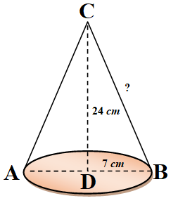 Diketahui tinggi kerucut 24 cm dan diameter alasnya 14 cm. Hitunglah :