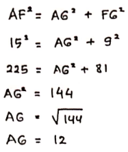 Segitiga AFG merupakan segitiga siku-siku, sehingga berlaku Teorema Pythagoras: