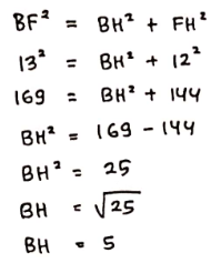 Segitiga BHF merupakan segitiga siku-siku, sehingga berlaku Teorema Pythagoras: