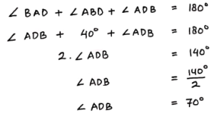 Jadi, jumlah dari ∠BDC dan ∠ADB = 40° + 70° = 110°.