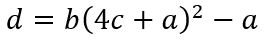 d  =  b(4ca)² – dan nilai dari  a + b + c + d = e³, maka tentukan nilai e.