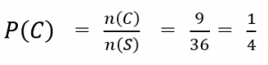 Jadi, peluang kejadian muncul mata dadu berjumlah 10 atau lebih adalah ![]()