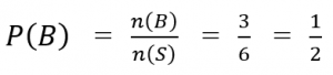 B = kejadian muncul mata dadu bilangan genap