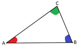 Jumlah sudut dalam segitiga adalah 180º atau ∠BAC + ∠ABC + ∠ACB = 180º.