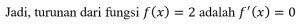 Rumus Turunan Fungsi Konstan