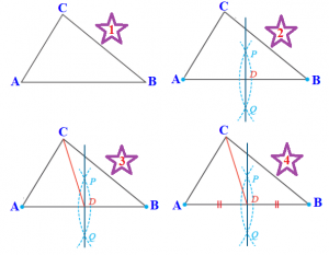 - Buatlah garis sumbu pada garis AB yang memotong sisi AB di titik D